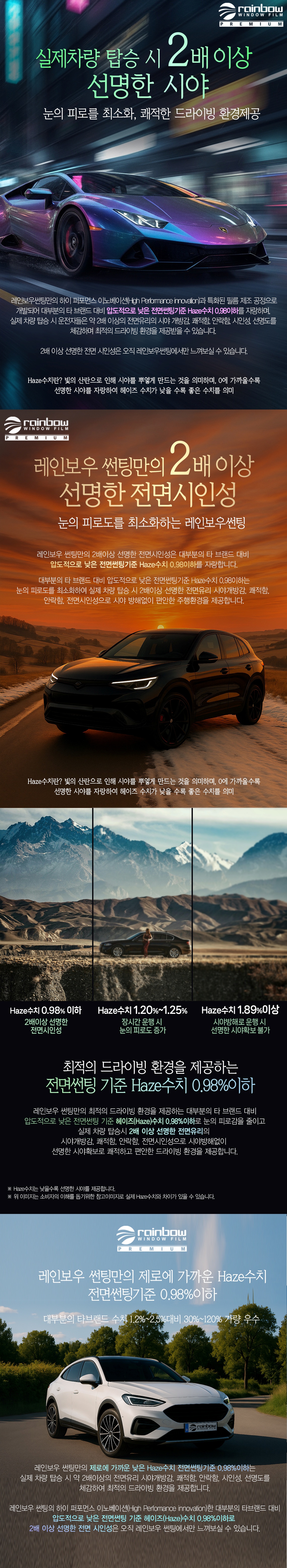 전면썬팅 기준 Haze수치 0.98이하로 시야방해없이 편안한 주행환경 제공